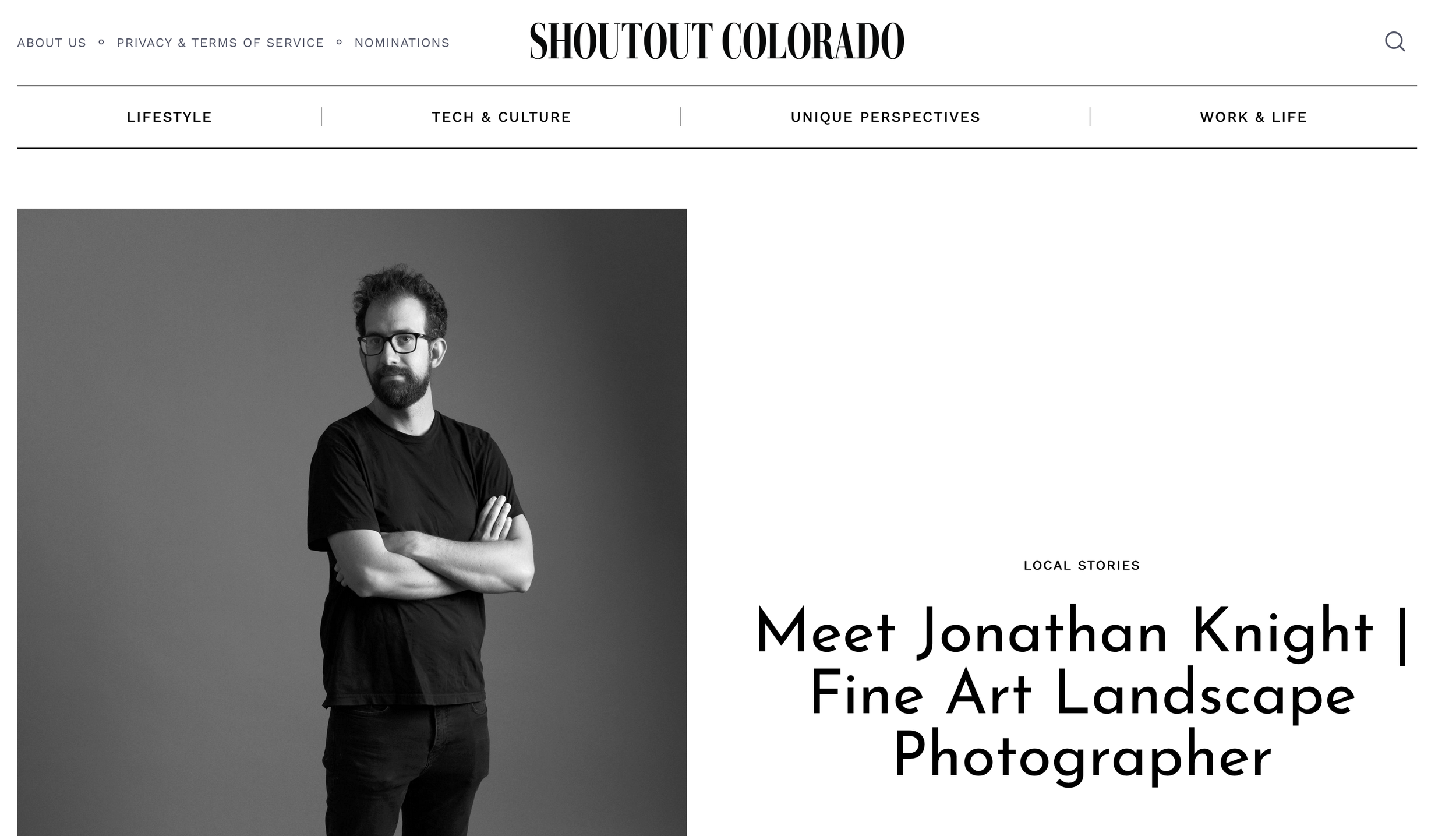 I'm honored to share that I was recently featured in Shoutout Colorado for a profile on my journey as a fine art landscape photographer. The article offers a personal look at how I arrived where I am today — from my early days in journalism to my career in landscape architecture, and ultimately, to returning full circle to photography.